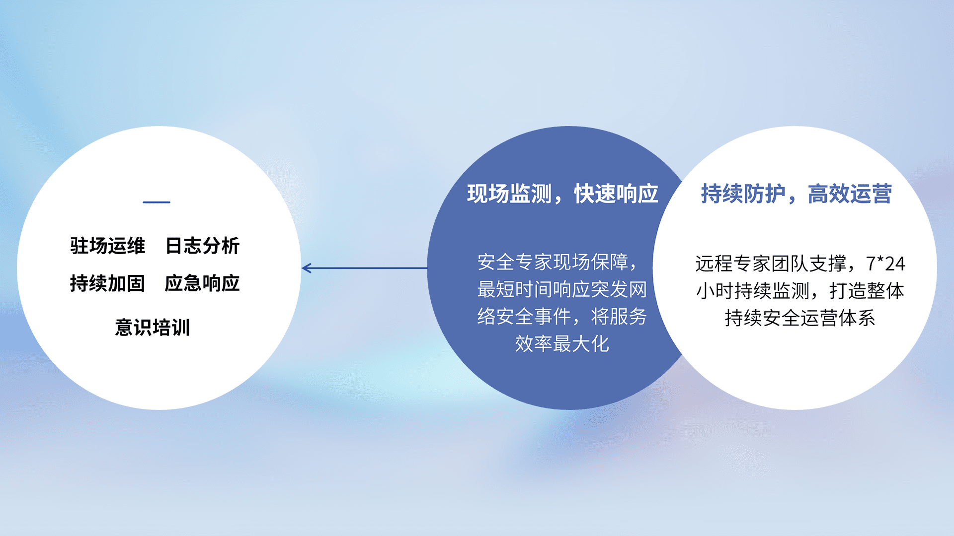 针对客户行业特性,,,,以专业的安全服务+多厂商联合解决方案提供专属的一站式安全管理服务,,帮助客户全面感知网络空间威胁,,基于识别、、检测、、、、分析、、、防护、、监测、、、响应的服务理论模型,,,从方案咨询、、集成交付、、、、评估验证、、、优化加固、、、、运维运营,,致力于为客户提供完整的闭环管理式安全服务。。。以实战经验为客户打造高抵御风险的安全体系,,帮助客户发现威胁、、、对抗威胁、、、处置威胁,,,,不断积累安全对抗能力,,持续保障数字化安全。。。。
